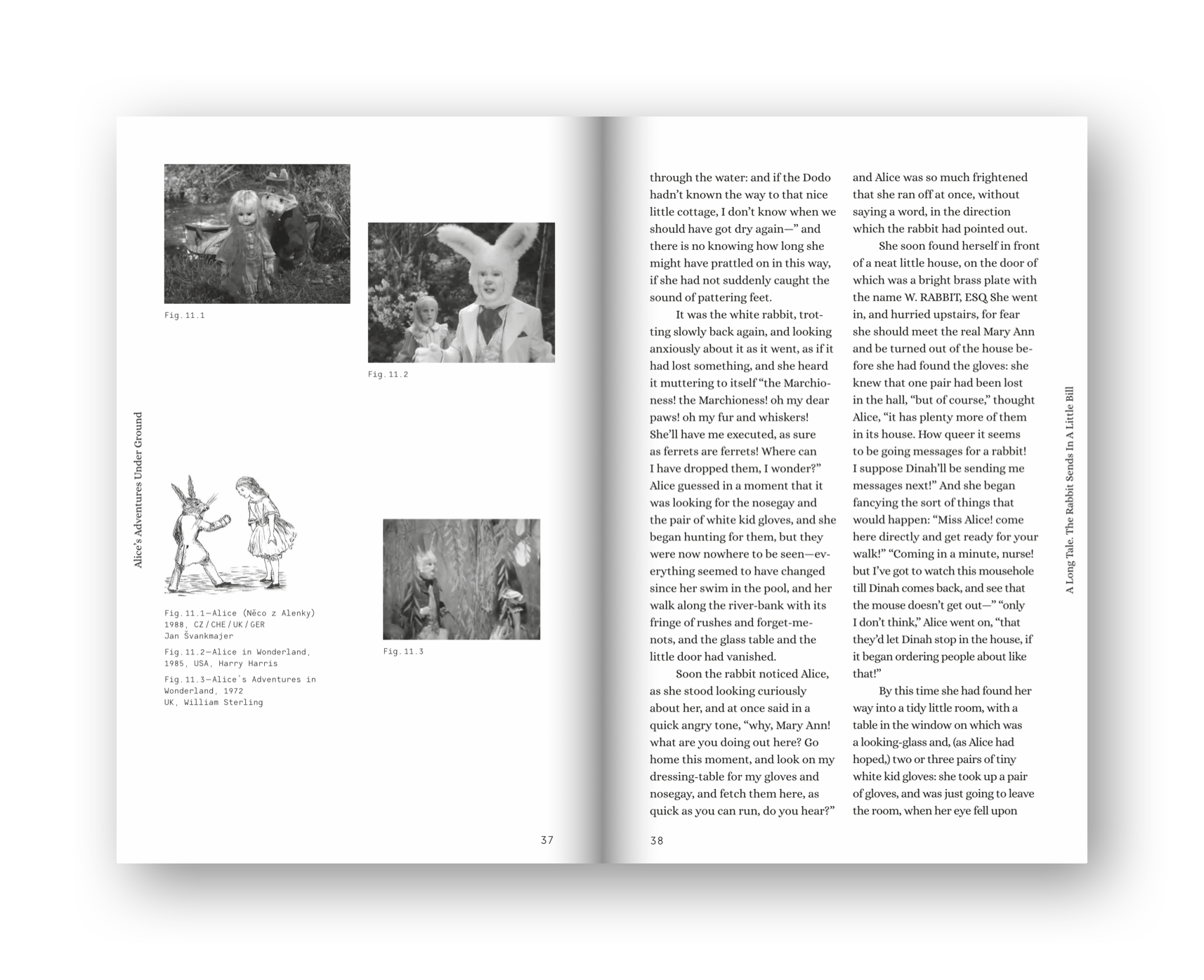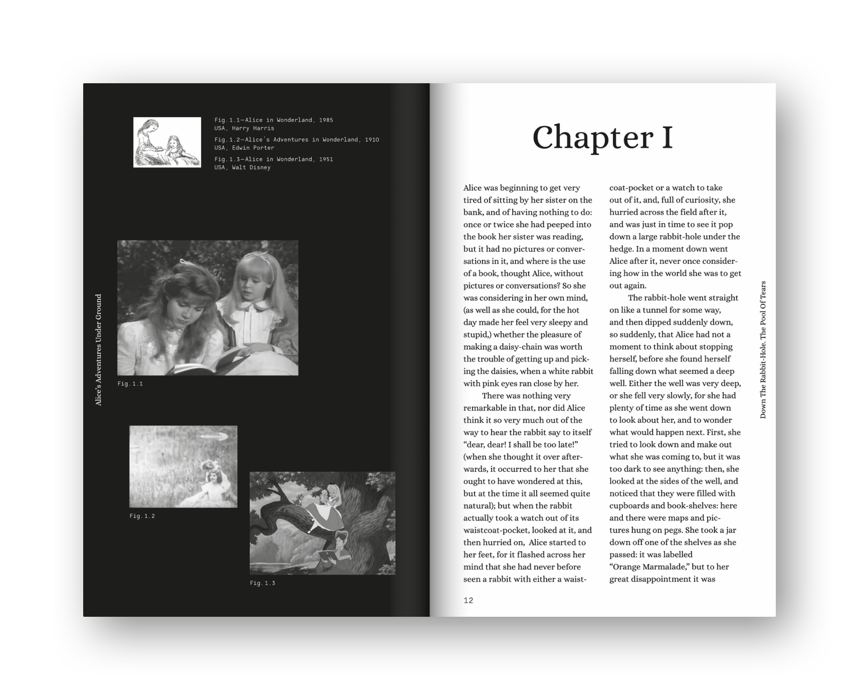 It allows readers to follow Alice’s adventures on screen and time-travel with her through the many visual iterations of Wonderland, documenting a cross-section of the imagery we associate with this much-loved tale, from the first silent film in 1903 until the frenetic 3D movies of today.